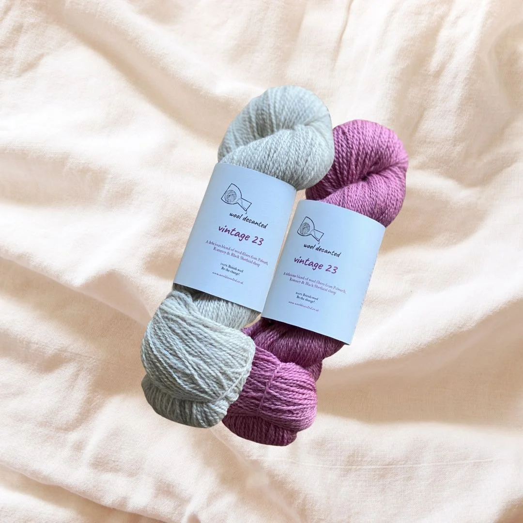 The shawl in the photograph was made with Island Dusk, vintage 23 4ply yarn.